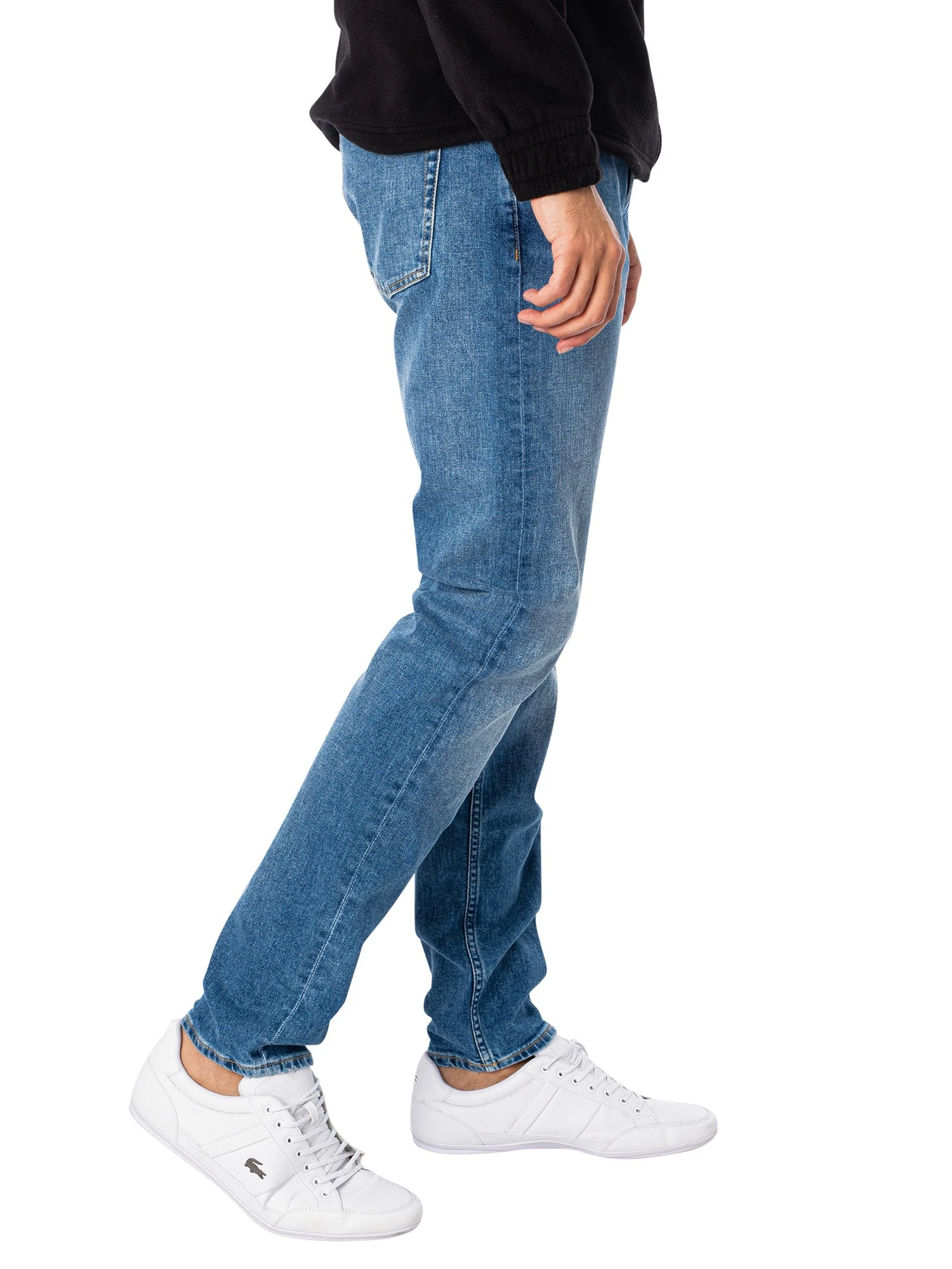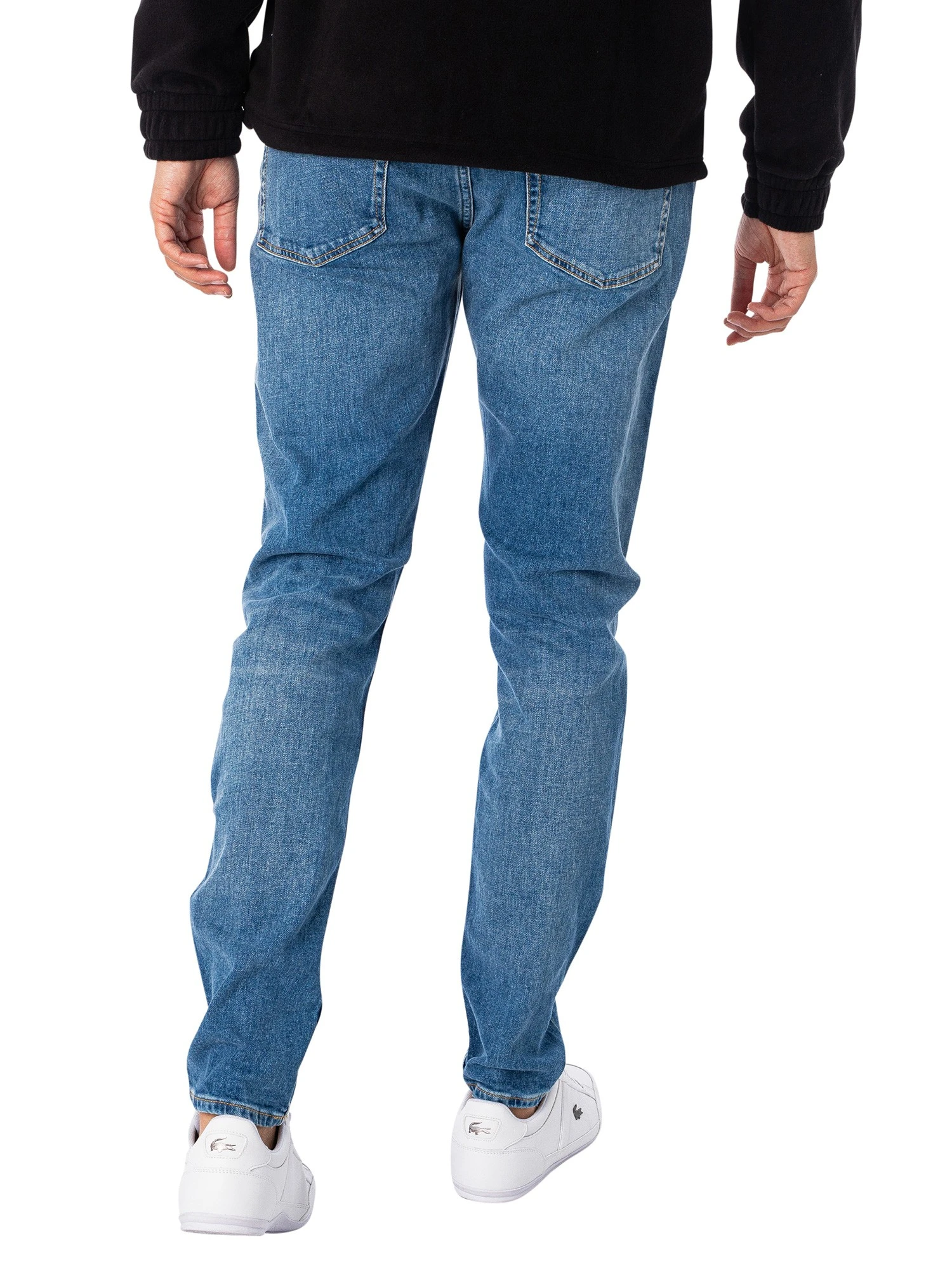 The Slim Taper Jeans from Calvin Klein Jeans comes with a classic five-pocket style, featuring a zip fly and a branded button. These slim tapered fit jeans are made with 20% recycled cotton. Coming in Denim Medium colour, these jeans feature a branded tag on back.