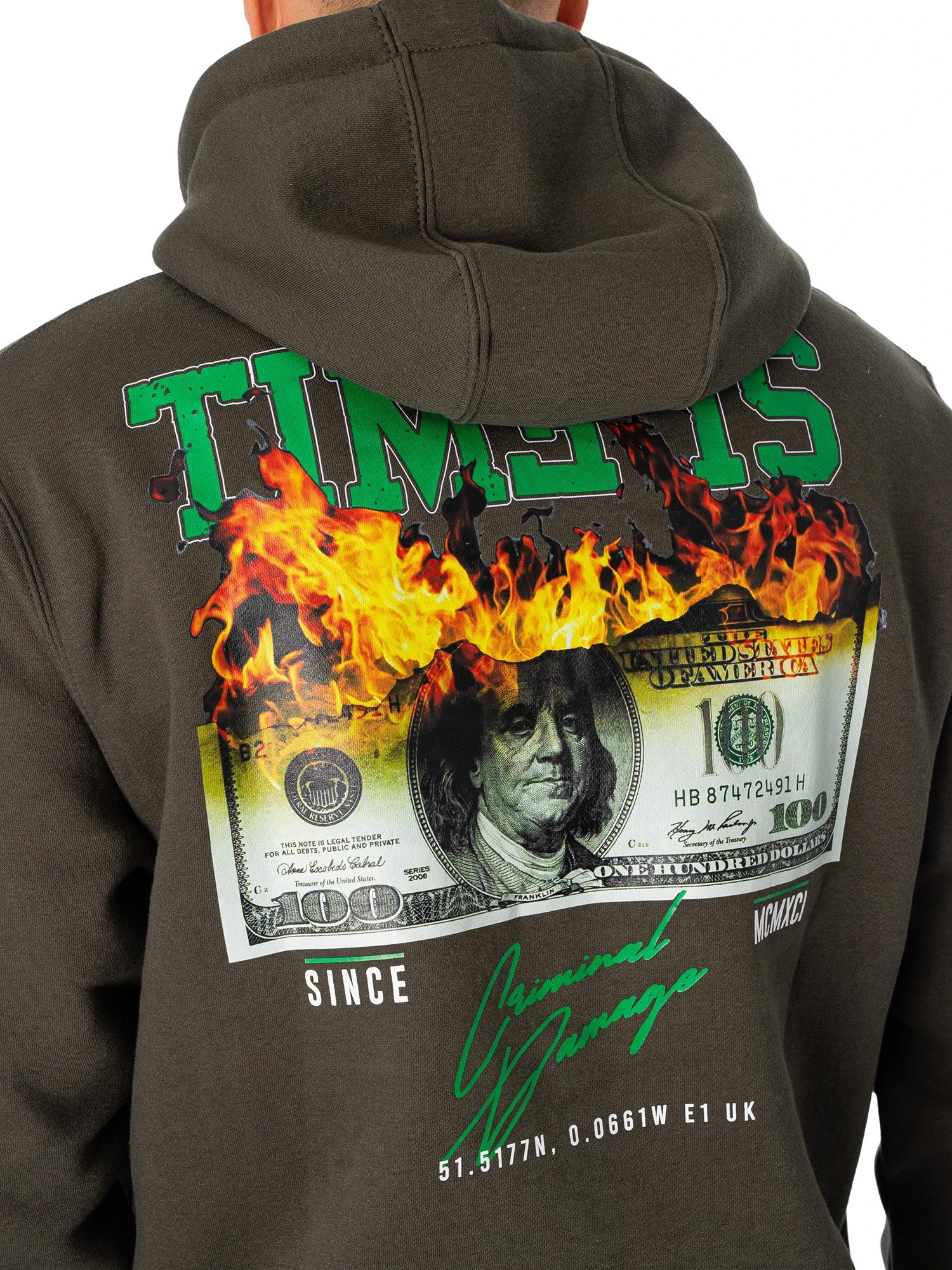 Criminal Damage Burn Money Graphic Pullover Hoodie – Forest Night