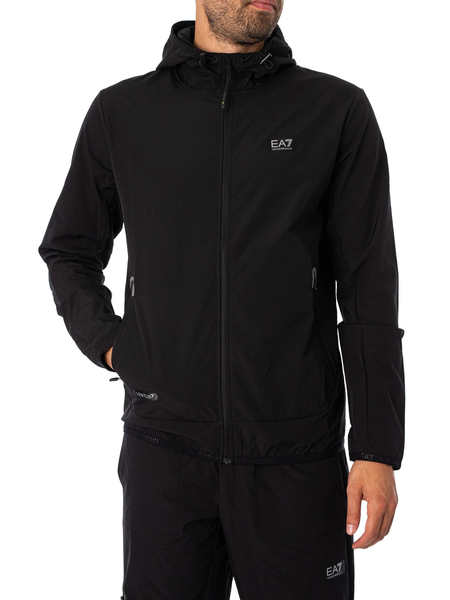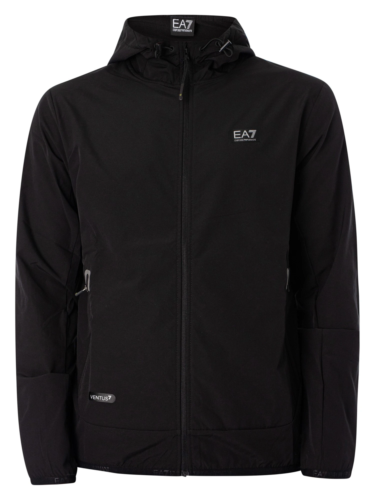 The Ventus 7 Lightweight Jacket from EA7 comes in Black colour, featuring a logo on chest. Coming with zip pockets and a toggled hood, this jacket features a zip closure and elasticated cuffs.