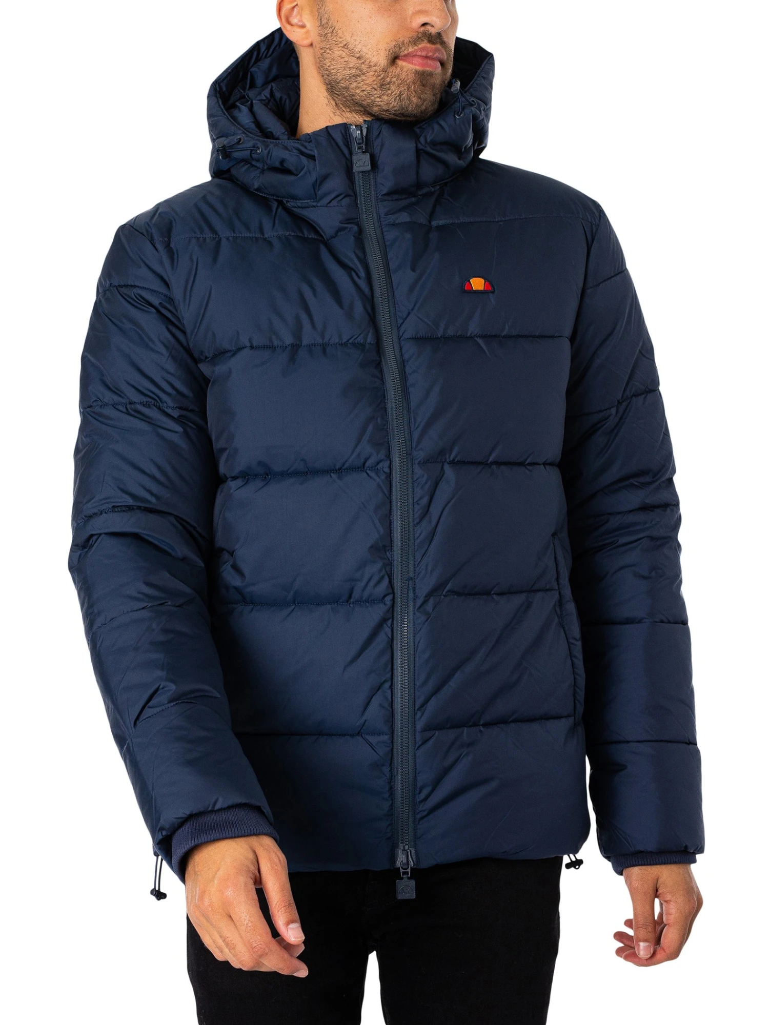 The Paddero Jacket from Ellesse comes in Navy colour, featuring an embroidered logo. Coming with open pockets and a detachable hood, this jacket features elasticated cuffs and a toggled hem.