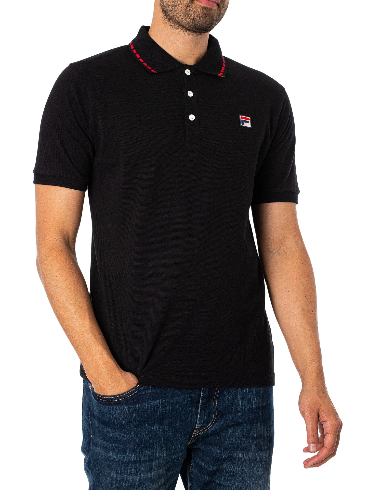 The Seb Polo Shirt from Fila comes with an embroidered logo on chest, featuring a straight hem and branded buttons. Coming in Black/Fila Red colour, this polo features a three-buttoned placket and short elasticated sleeves.