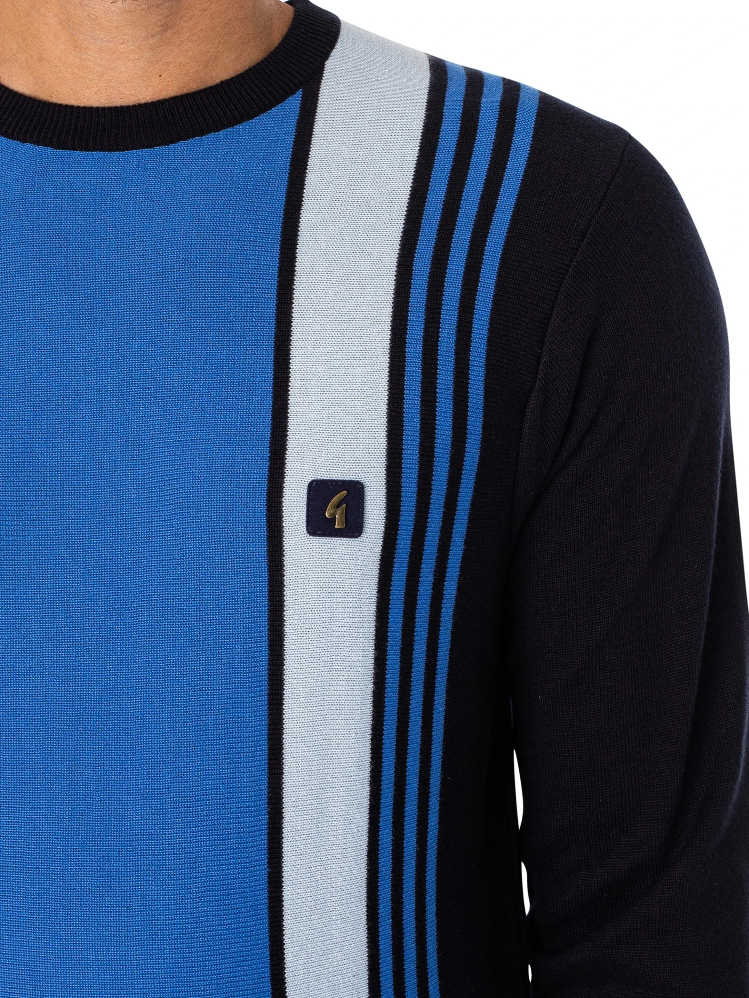 The Cruger Knit from Gabicci comes with elasticated cuffs and hem, featuring a crew neck and full sleeves. Coming in Insignia colour, this jacket features a logo on chest.