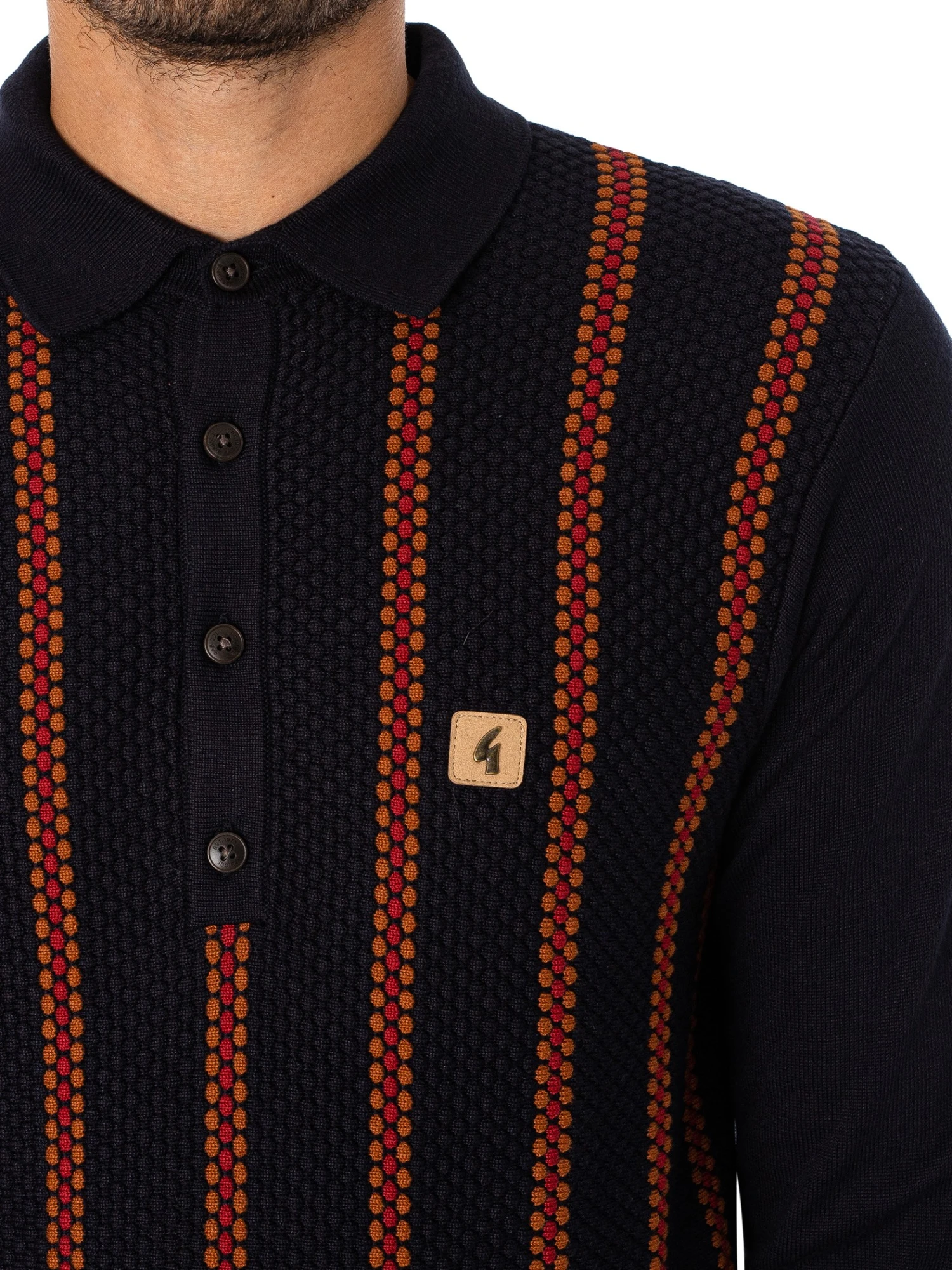 The Fresco Longsleeved Polo Shirt from Gabicci comes in Navy colour, featuring a logo on chest. Coming with elasticated cuffs and hem, this polo features a three-buttoned placket with branded buttons.