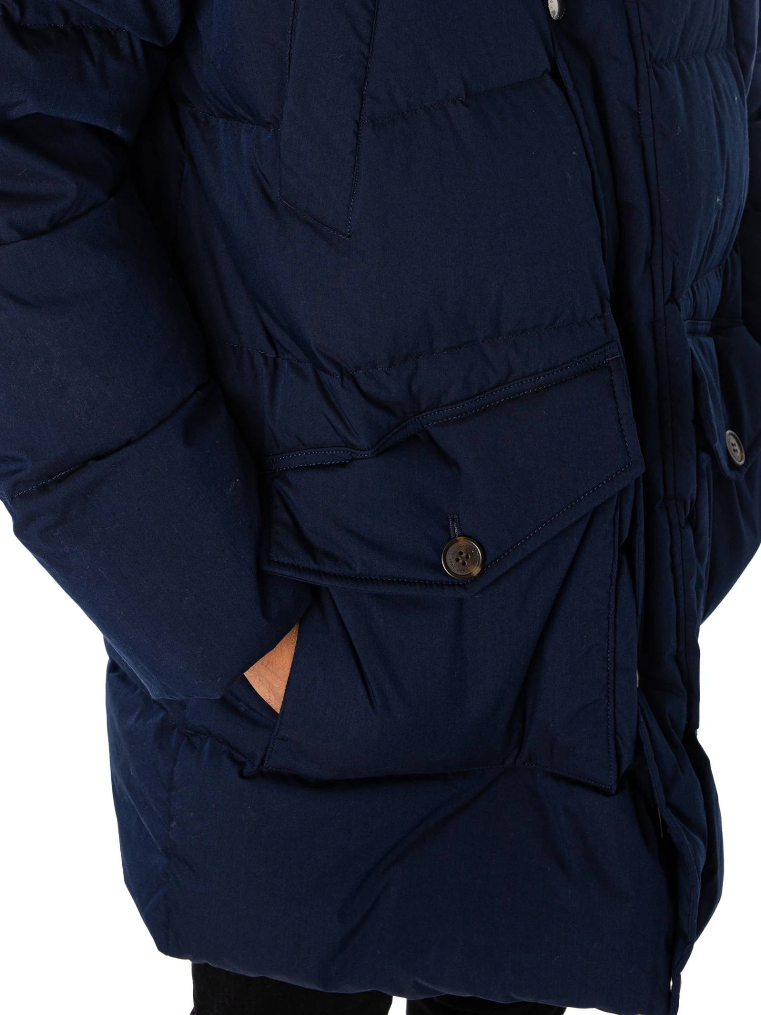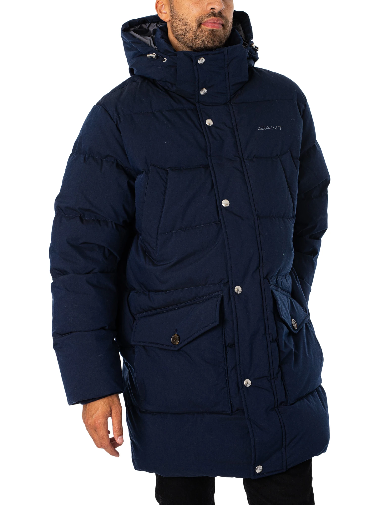 The Long Alta Down Jacket from GANT comes with buttoned pockets and elasticated cuffs, this jacket features branded buttons and zip inside pocket. This jacket is made with 100% certified down. Coming in Evening Blue colour, this jacket features a logo on chest and a detachable toggled hood.