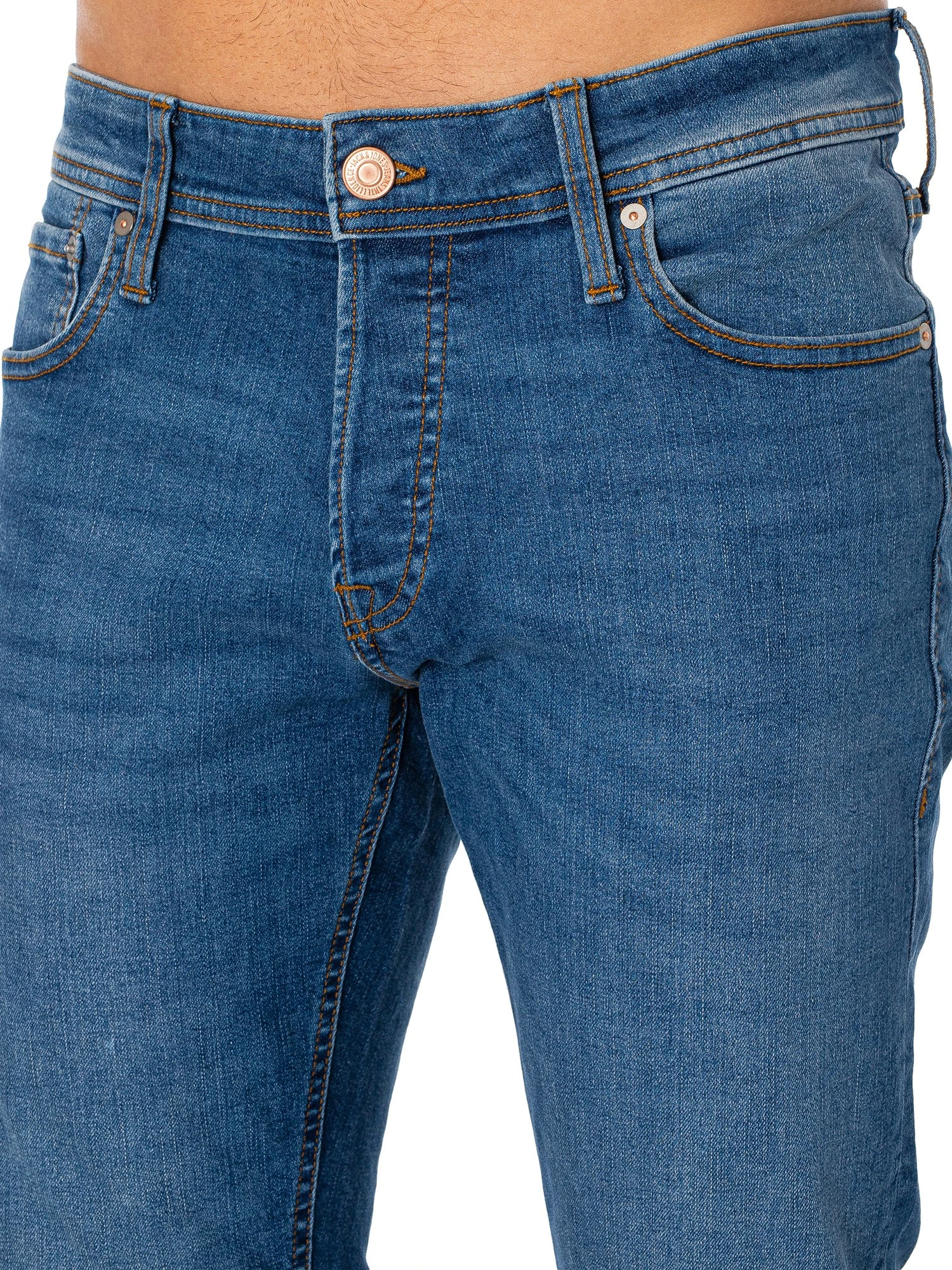 The Glenn Original 223 Slim Jeans from Jack & Jones comes in Blue Denim colour, featuring a buttoned fly, branded buttons, and slim fit. Coming with a classic five-pocket style, these jeans feature a branded tab at the back.