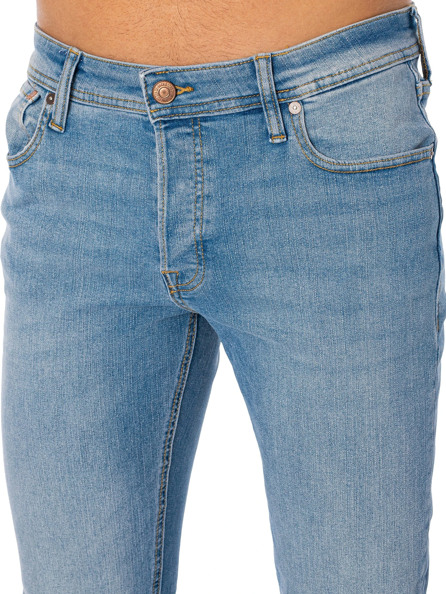 The Glenn Original 770 Slim Jeans from Jack & Jones comes in Light Blue Denim colour, featuring a buttoned fly, branded buttons, and slim fit. Coming with a classic five-pocket style, these jeans feature a branded tab at the back.