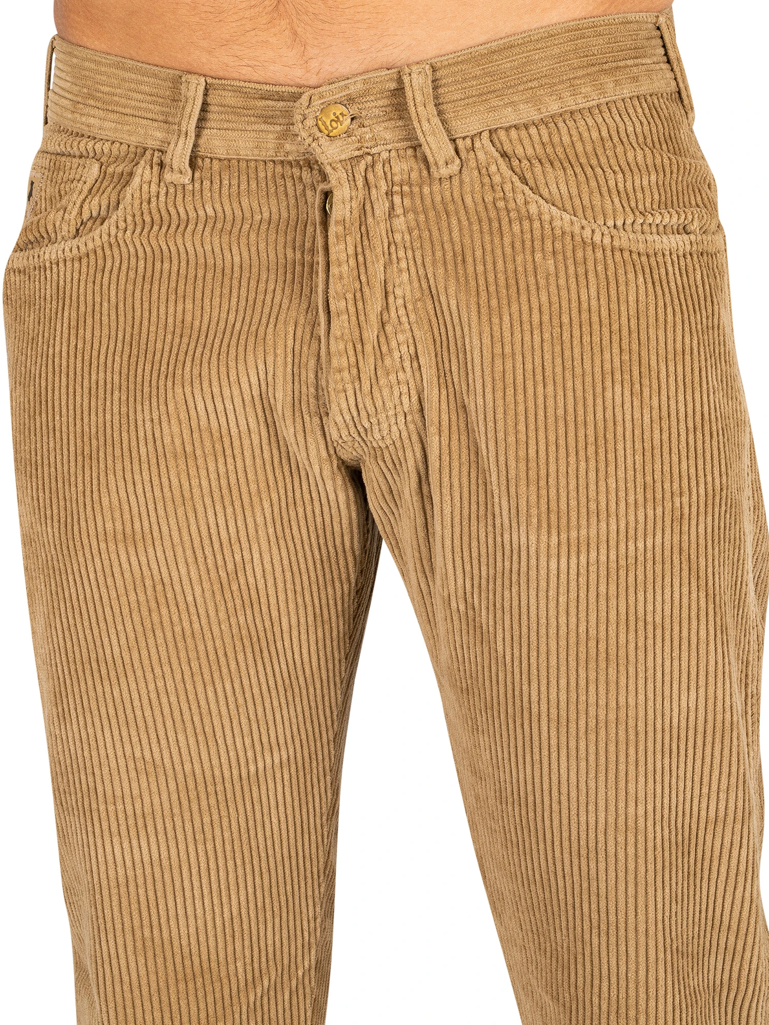 The New Dallas Jumbo Cord Jeans from Lois Jeans comes in Dark Sand colour, featuring branding above right pocket. Coming in a classic regular straight leg fit with a classic five pocket style, these jeans feature a button fly and branded buttons. This pair of jeans sports an embossed branded patch on back pocket.