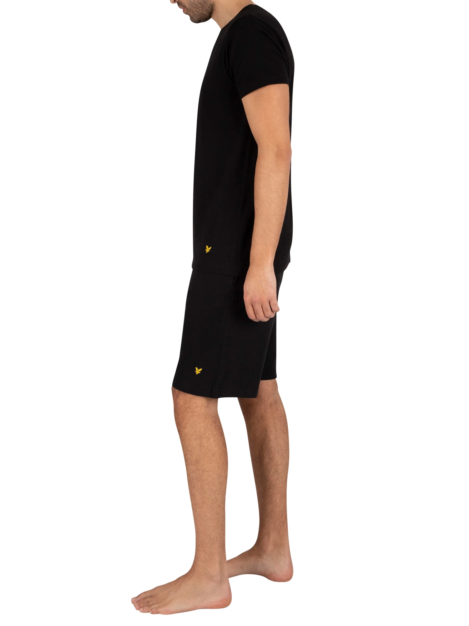The Charlie Pyjama Set from Lyle & Scott comes in Black colour. The top comes with an embroidered logo near straight hem, featuring a crew neck and short sleeves. The shorts come with branded elasticated waistband, and open side pockets, featuring an embroidered logo on front.