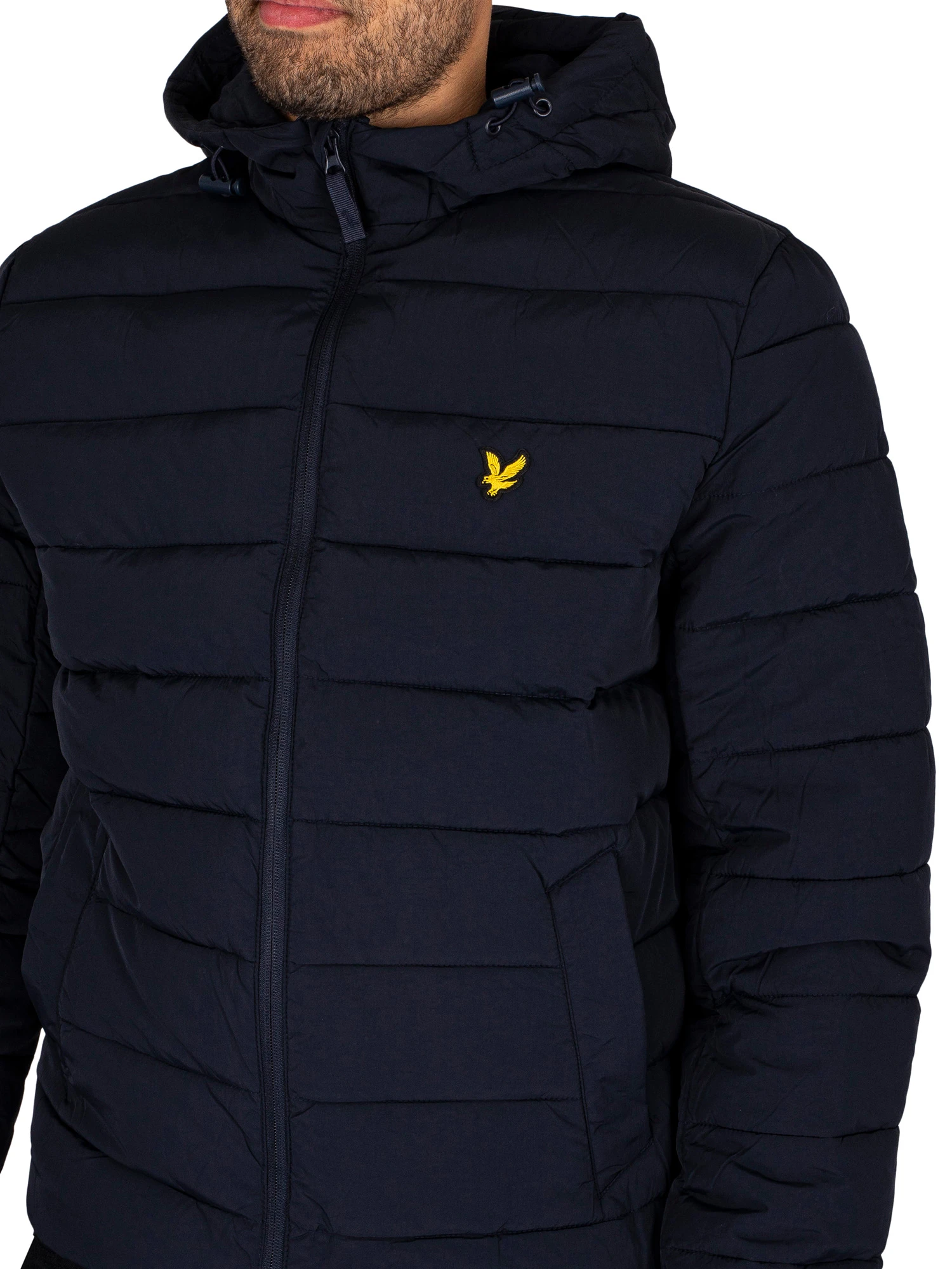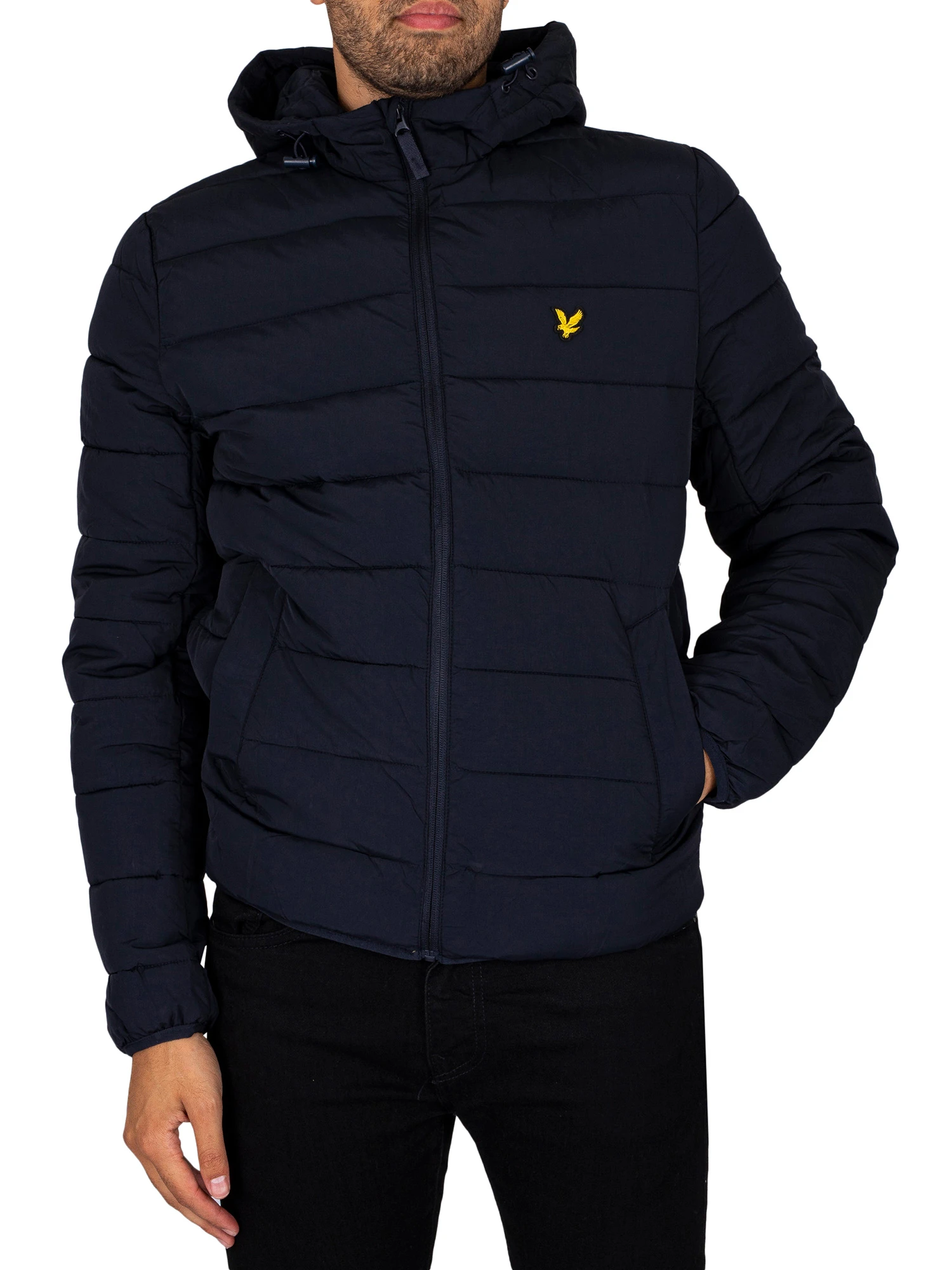The Lightweight Puffer Jacket from Lyle & Scott comes in Dark Navy colour, featuring an embroidered logo on chest. Coming with open pockets and a toggled hood, this jacket features elasticated cuffs and hem.
