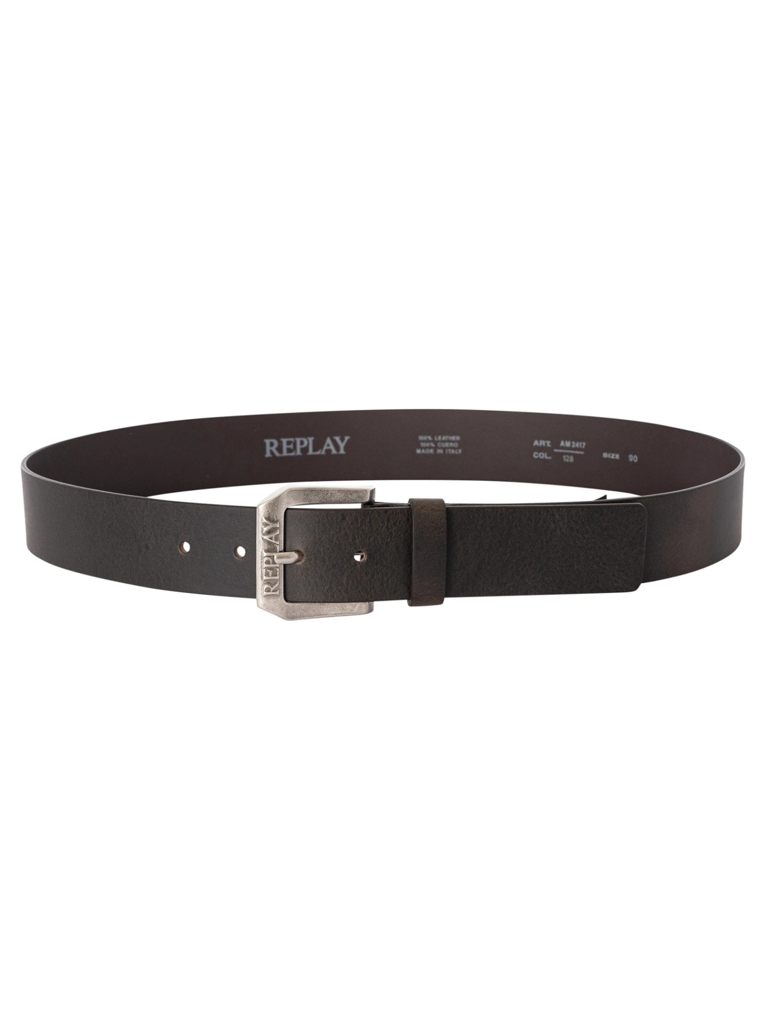 The Branded Leather Belt from Replay features a branded buckle. This belt comes in Brown colour. Width: 4cm. Sizing: XS/80 = 28W, S/85 = 30W, M/90 = 32W, L/95 = 34W, XL/100 = 36W, XXL/105 = 38W, 3XL/110 = 40W.