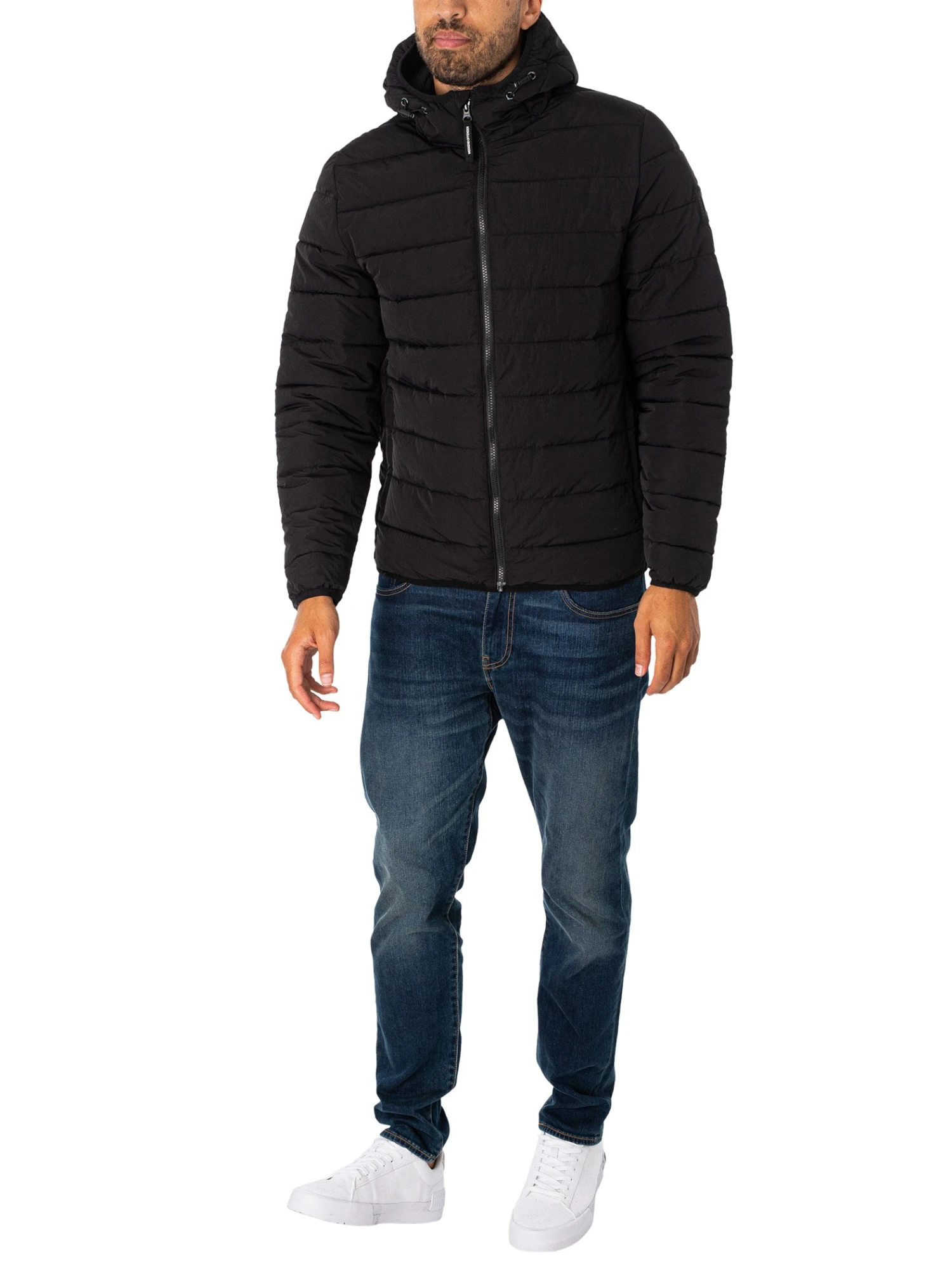 The LA Guardia Puffer Jacket from Weekend Offender comes with zip pockets and a toggled hood; this jacket features elasticated cuffs and hem. Coming in Black colour, this jacket features a logo on sleeve.